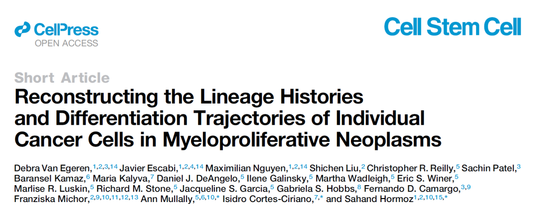 近日,哈佛大学医学院的研究人员在 Cell 子刊 Cell Stem Cell 杂志发表了题为:Reconstructing the Lineage Histories and Differentiation Trajectories of Individual Cancer Cells in Myeloproliferative Neoplasms 的论文。